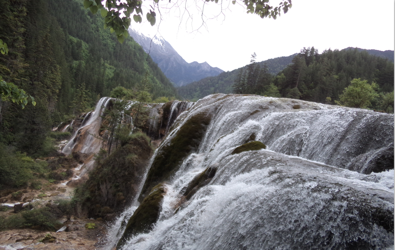 由于九寨溝河谷高低不平,湖泊與湖泊之間恰似一級(jí)級(jí)天然的臺(tái)階,由此形成一道道高低錯(cuò)落的瀑布,珍珠灘瀑布最為壯觀,據(jù)說(shuō)當(dāng)年西游記劇組就是在這兒拍攝了師徒四人過(guò)瀑布的場(chǎng)景。那瀑布瀉下的水簾宛如白練騰空,銀花四濺,而聲音更是雄渾,不愧為一絕。雪峰插云,古木參天,平湖飛瀑......九寨溝,大自然的杰作,童話(huà)的世界,人間的仙境!